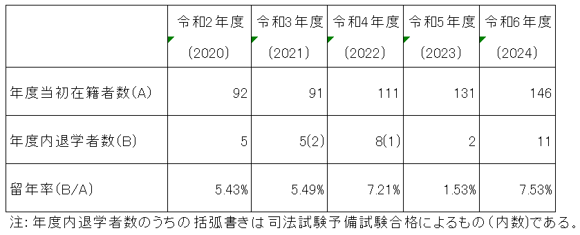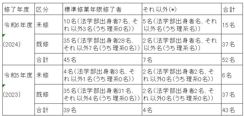 注:名古屋大学法科大学院には長期履修者制度はないため、長期履修者数はゼロです。